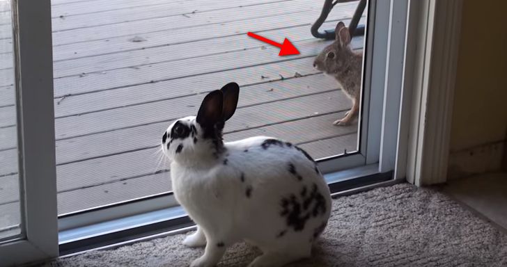 He’s just hanging out in the living room when suddenly this little wild rabbit spots him and can’t get enough. They are instant friends! LOL